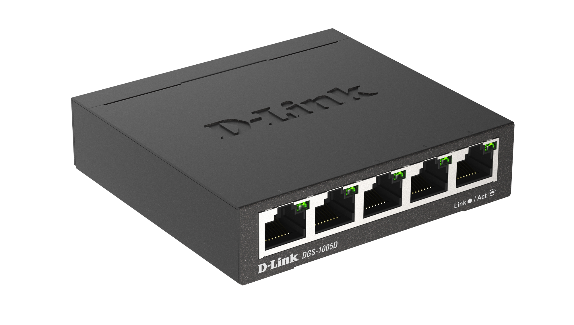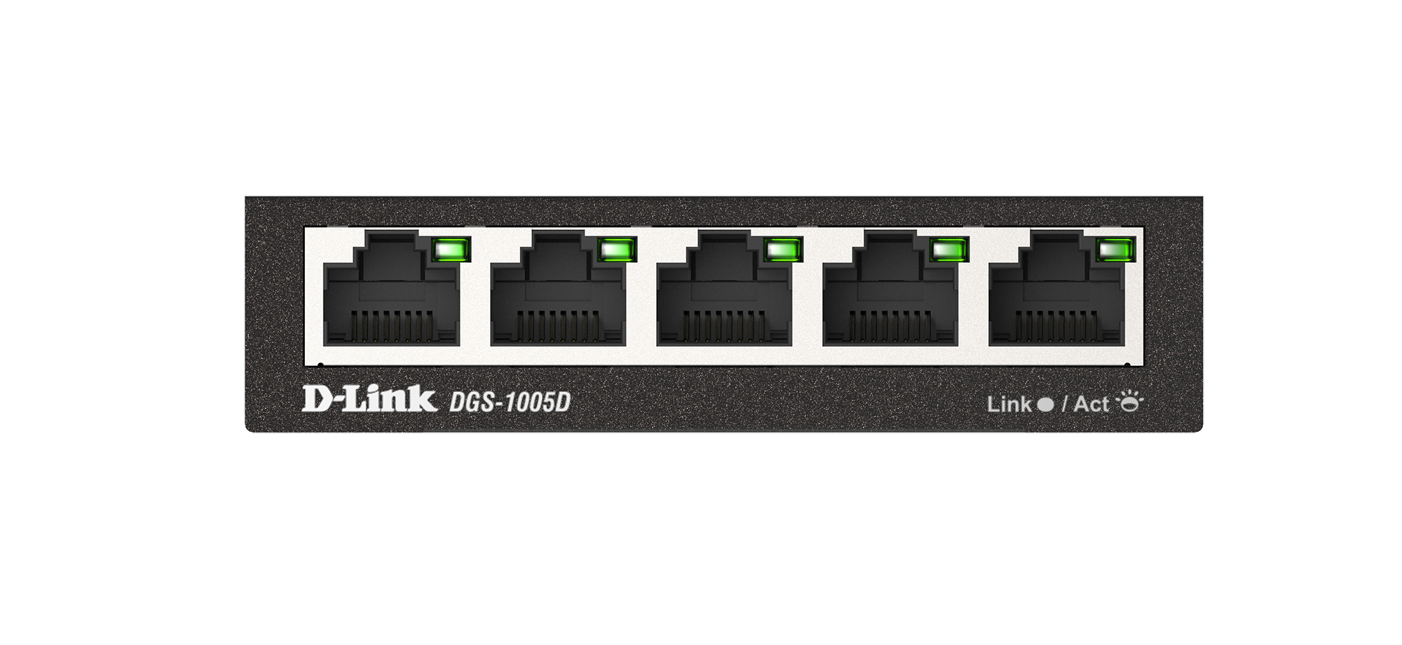 The DGS-1005D 5-Port 10/100/1000Base-T switch is ideally suited for Small Office Home Office (SOHO), Small Medium Business (SMB), and Small Medium Enterprise (SME) environments. With a durable design, silent operation, and plug-and-play functionality, the DGS-1005D switch can be easily set up and be placed in almost any location where network connectivity is required. Support for IEEE 802.3az Energy-Efficient Ethernet (EEE), 802.1p Quality of Service (QoS), and Gigabit Ethernet connection speeds provide advanced features in a compact package.